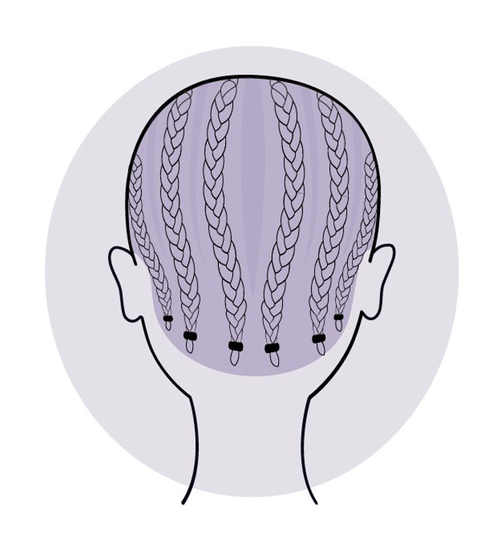 One of the most common ways to prep your natural hair is to put it in cornrows. There are several parting patterns to choose from, but the most widely-used pattern for both short and long hair is “straight backs”.